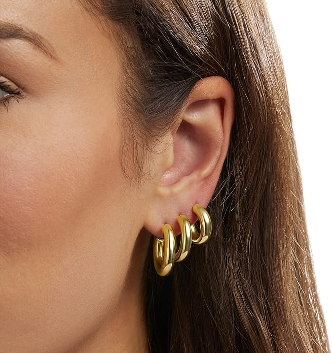Amazon Essentials 14K Gold-Plated Thick Hoop Set, $, available at Amazon