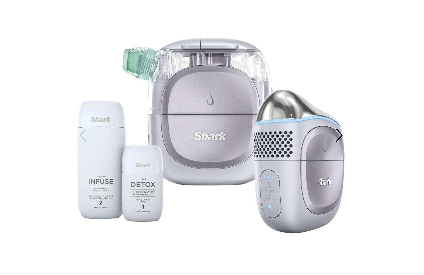 Shark Beauty’s new FacialPro Glow is an advanced at-home facial device that combines hydro-powered extraction, hydration infusion, and contrast therapy to deliver spa-quality results. Start by applying the Derm Detox AHA + BHA Exfoliating Gel to loosen buildup and prep the skin. Next, move on to extraction by attaching the exfoliating head to the device and using gentle suction to cleanse pores and remove impurities. Finally, switch to the Hydro Infuse BHA Hydrator, which replenishes moisture and boosts hydration by up to 128% and leaves the skin glowing.